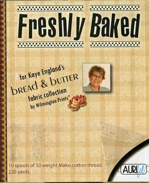 This Freshly Baked for Kaye England Bread & Butter Society thread set includes one spool each of 10 colors of 50wt 220yd Mako cotton thread.