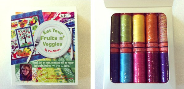 This set includes one 220yd spool each of 10 colors of 50wt cotton thread, Art.A20050. These colors have been personally selected by Pat Sloan because they are, mmm, mmm good with my yummy fabric collection from Moda.