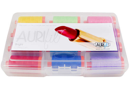 Includes 12 Large Spools of Aurifi Cotton 50wt thread by Angela Yosten. Colors: 2120, 1104, 2395, 2250, 6737, 2870, 2810, 2740, 2530, 2535, 2545 and 2520.