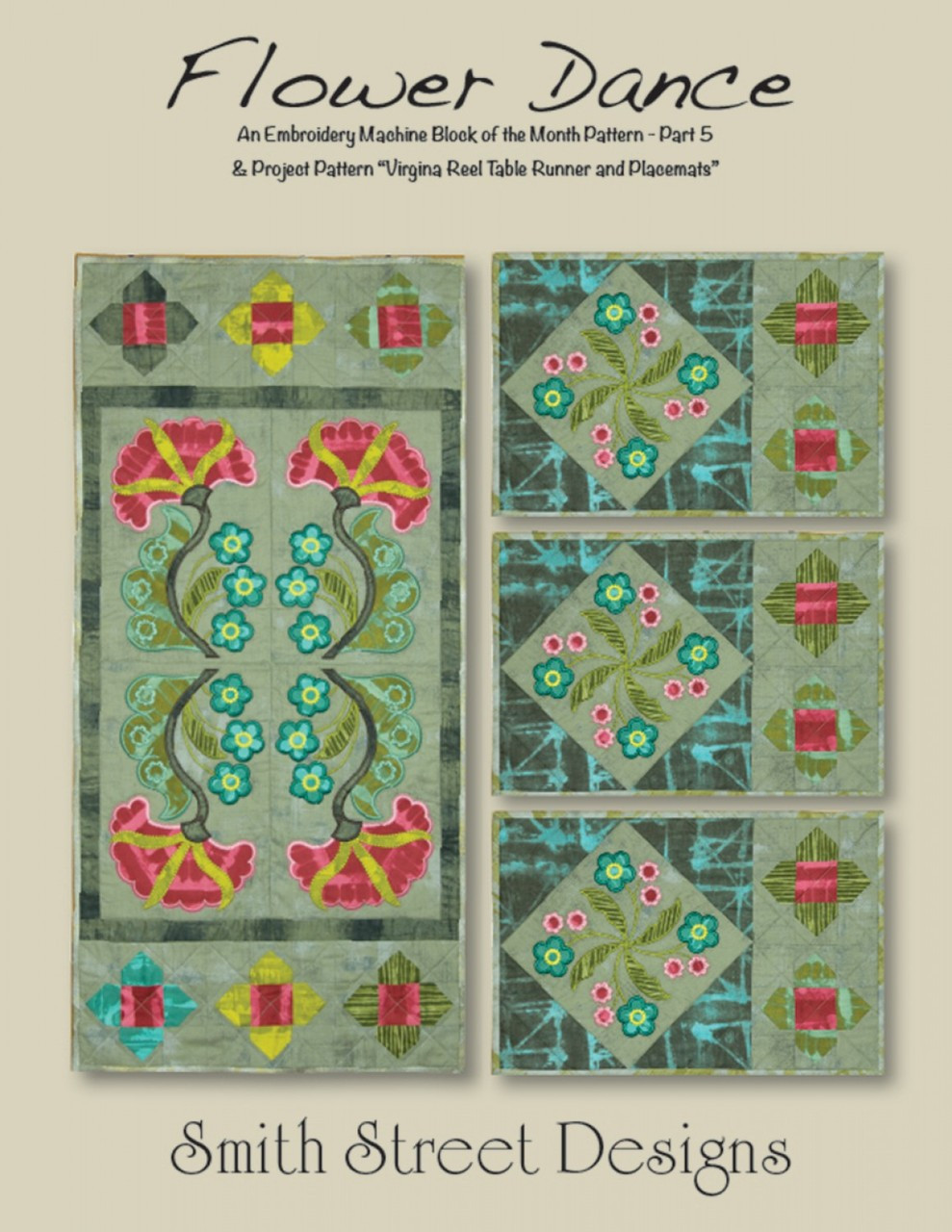 Loading... Please wait...Flower Dance Block of the Month embroidery machine applique quilt pattern - Part 5. Also includes table runner and placemat project pattern.