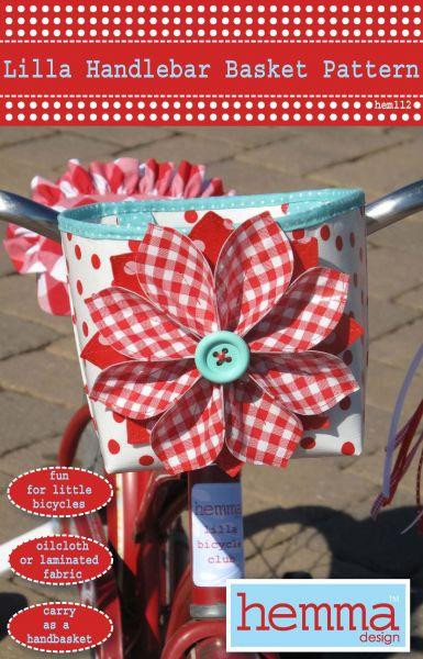 The Lilla Handlebar Basket makes bicycling fun for little cyclists. It's the perfect size for girl's bikes & tricycles. Take it off of the handlebars and carry as a hand basket. Can be made from oilcloth or heavier weight laminated fabric.