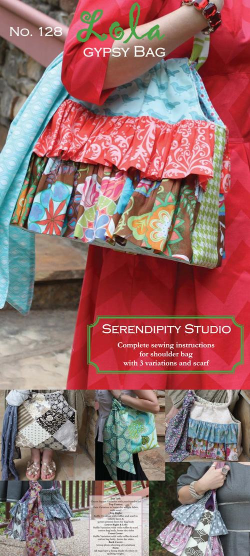 This shoulder bag has room for the essentials and lots more! Variations include plain, pieced or tiers of ruffles Interior features include a zippered pocket and patch pockets The finishing touch is a billowy scarf tied to one of the handles. Finished Size:14 inchtall x 12 inchwidex 4 inchdeep