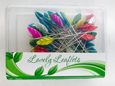 Enjoy these fun leaf pearlized sewing pins! Includes 100 straight pins and plastic pin storage box. Versatile pins also for use in corsages, headdresses and floral arrangements. 0.7mm / 55mm