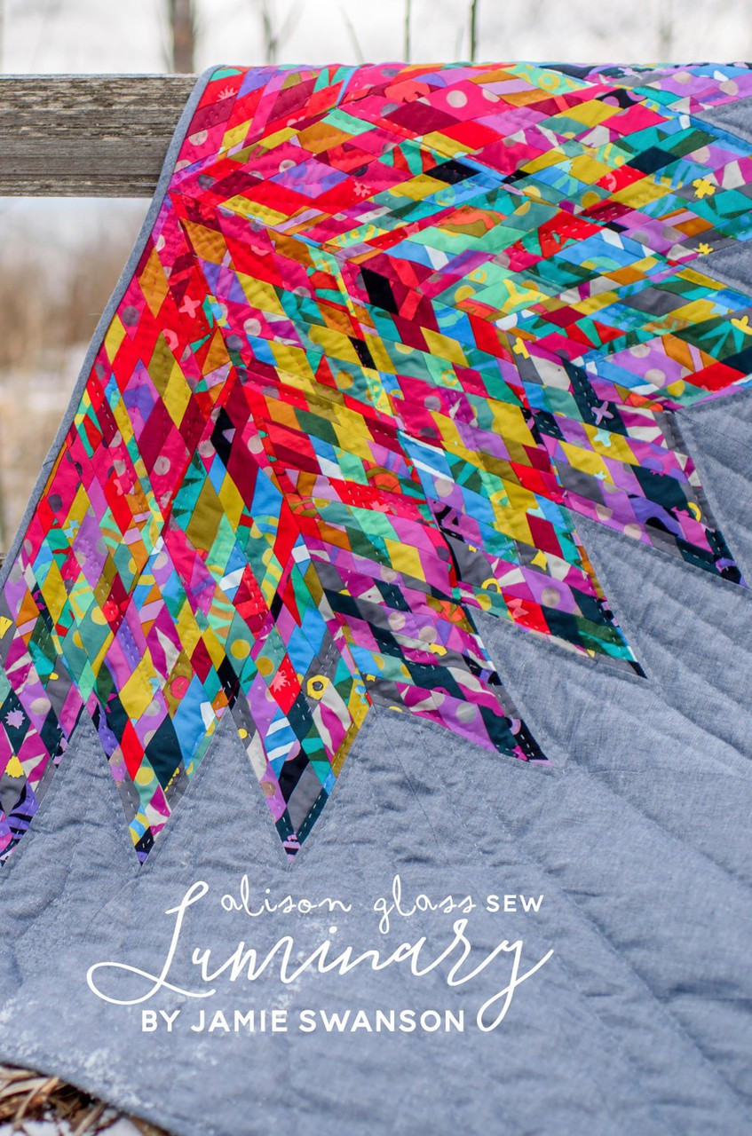 Loading... Please wait...‘Luminary' is a new take on a traditional lone star quilt, but with a modern improv twist. The color movement from the center to the tips is really spectacular! The cover quilt is shown in Handcrafted Patchwork fabrics by Alison Glass for Andover and Andover Chambray in Navy. This is an Alison Glass pattern by Jamie Swanson.