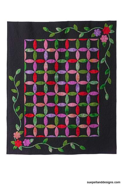 This award winning quilt is a feast for the eyes! Made in bold batiks on black or in soft shades of pink and blue, this quilt is a stunner. Complete instructions, full size border patterns and helpful hints included in this 36 x 66" pattern.