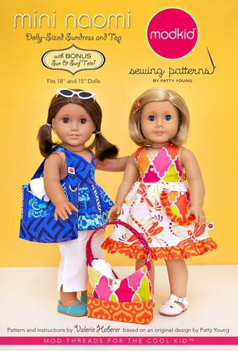 Mini-Naomi is the quintessential “beach dress”for your 18 and 15 dolly... casual, lightweight, comfortable and oh, so adorable! It features shabby chic raw-edge braided straps, a sweet ruffled hem and a soft and comfy shirred back. It also includes the Mini Sun & Surft Tote!
