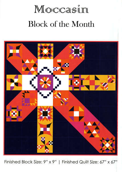 Complete Quilt set consisting of all twelve blocks for Moccasin Block of the Month. Finished Block 9in x 9in. Finished quilt size is 67" x 67".