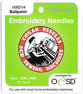 Large eye for embroidery. Titanium for long life. Ballpoint 10 needles per pack.
