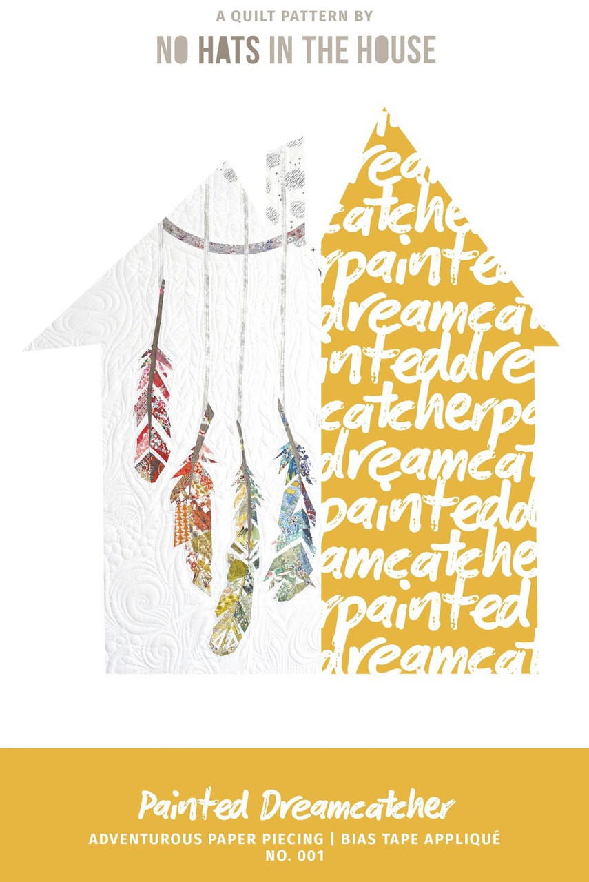 Painted Dreamcatcher is a fresh and adventurous foundation paper pieced and appliqué design featuring a feather-studded dreamcatcher against a backdrop of sunrays. Each pattern is made up of a full color 12 page booklet, which includes basic paper-piecing instructions; a coloring page; and a 25 page set of templates printed on standard letter paper (8.5" x 11"). Pattern instructions also include separate piecing instructions for 5 individual feathers. Finished size: 36" x 48". Individual feather sizes vary: 3 1/4"-4" wide and 14"-16" tall.