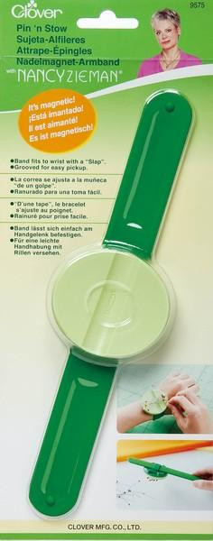 Magnetic band fits to your wrist with a slap. Grooved for easy pickup.