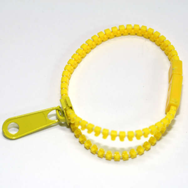 Wear these fun and colorful zipper bracelets all alone or connect them together to create more fun fashion accessories. Easy snap clasp. Zip open and zip shut. 7 inches. Available in assorted colors