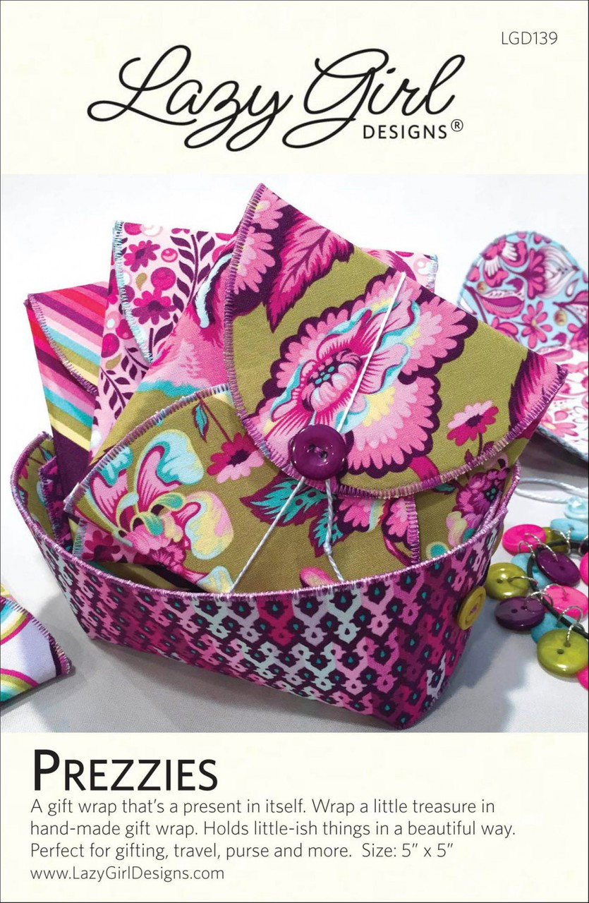 Loading... Please wait...A gift wrap that’s a present in itself made from 10” squares. Wrap a little treasure in hand-made gift wrap. Holds little-ish things in a beautiful way. Perfect for gifting, travel, purse and more. Layer cake friendly. Use with Lazy Girl pre-cut Stiff Stuff 10" squares SLG107SQ. Fuse a little, cut a little, sew a little - and done! Finished size: 5” x 5” closed, 11 3/4” x 11 3/4” open.
