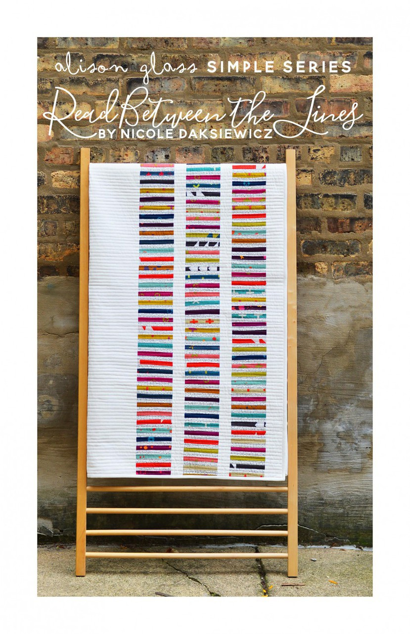 Loading... Please wait...'Read Between the Lines' is an AG published pattern by Nicole Daksiewicz featuring the popular Alison Glass ‘Text' print combined with ‘Handcrafted.' It’s striking simplicity and multiple size options make it a great pattern for this series.