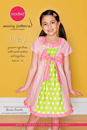 Loading... Please wait...Riley is an adorable peasant-style dress with a rounded neck band, a paneled front body and a whimsical bow detail that will make every girl twirl with delight. Choose a long- or short-sleeved version and make it with or without the contrast ruffles for a different look every time. Sizes: 2T - 10.