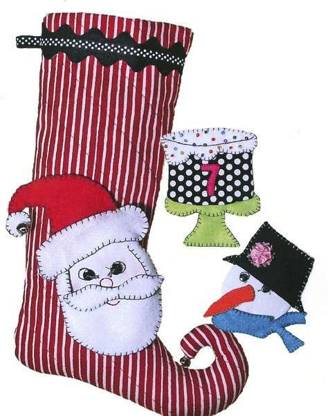 Loading... Please wait...Fun stocking perfect for small gifts and home decoration. 3 unique characters to make Santie, Brrr the Snowman, Birfday Cake for kids of all ages. Instructions included for embellishing with trim or prairie points. Stocking size 9in x 14in