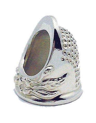 The Roxanne silver plated thimble is American made to last a lifetime and is virtually impenetrable by needles. Each thimble is hand dye cast in bronze and plated with 14K sterling silver.