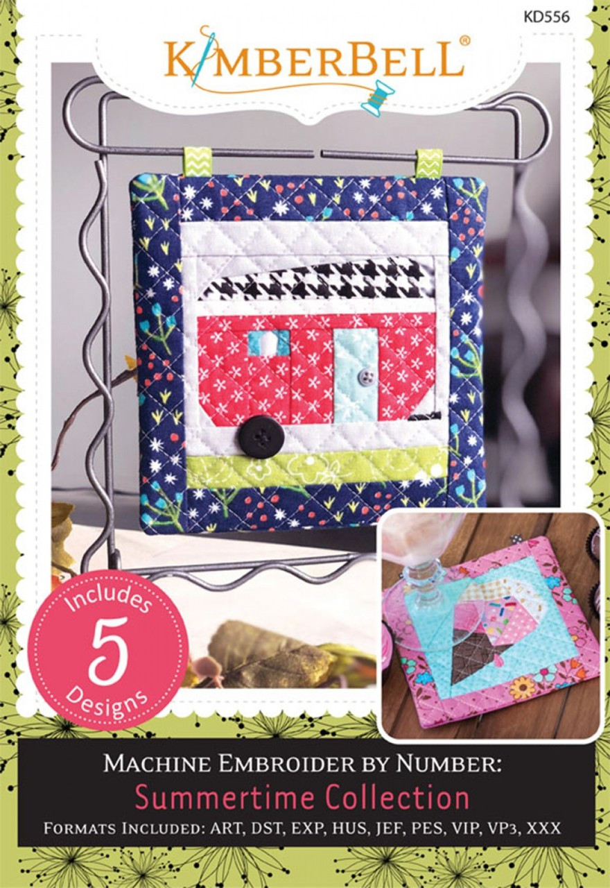 Loading... Please wait...Kimberbell’s original Machine Embroidery by Number project CD includes a collection of five favorite summertime icons: American Flag, Ice Cream Cone, Retro RV, Sailboat, and Watermelon. With the look of paper piecing, each section of fabric is sewn with precision on your embroidery machine. Crosshatch quilting and optional ribbon loops for hanging complete the mini quilt in all five sizes. From extra-small to extra-large, you’ll find many ways to display and use each one—coaster or mug rug, potholder or placement, seasonal ornament or home décor. The smallest size even makes an adorable pin cushion.