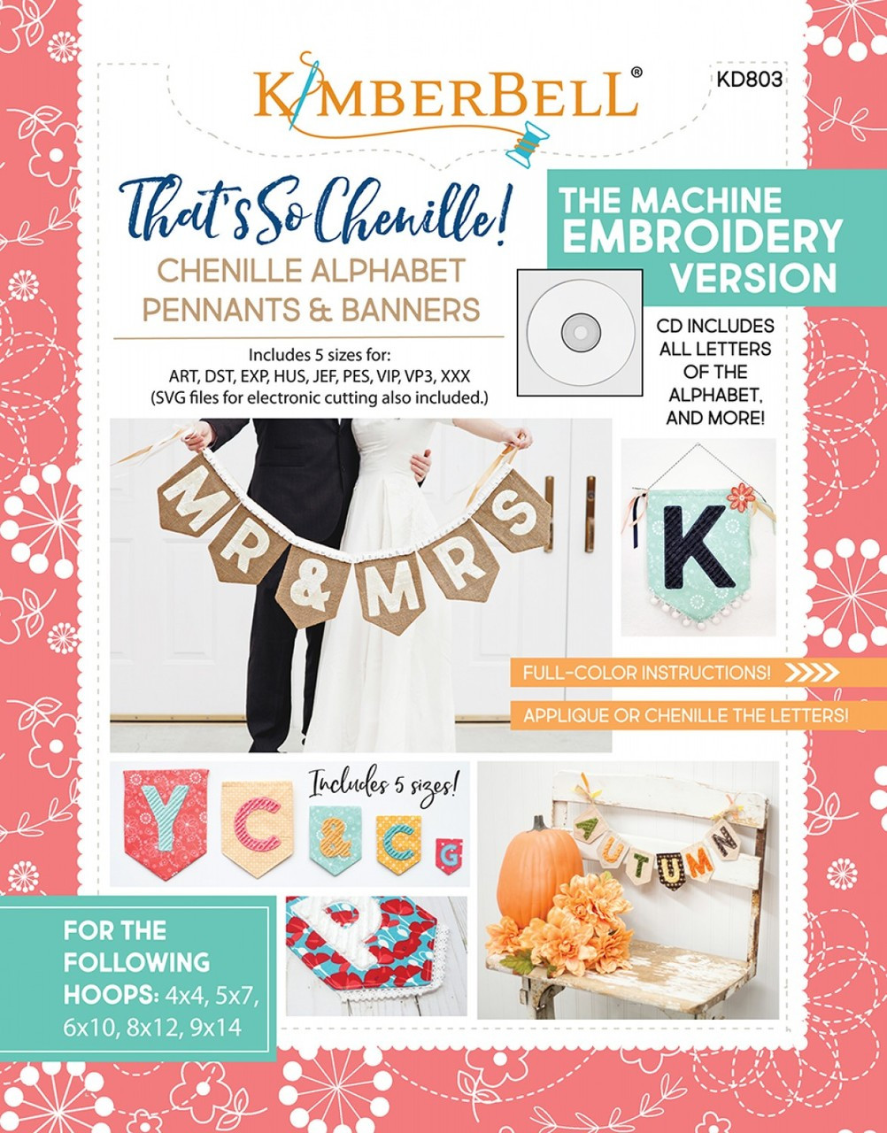 Loading... Please wait...Kimberbell’s chenille alphabet pennants are Cute with a capital C!! We’ve covered all the letters A through Z, plus exclamation point, hashtag, and ampersand symbols (! # &). Individual letters are appliqued on the pennant design with a decorative outline stitch, then layers of fabric are tacked in place ready to chenille.