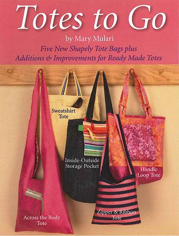Improvements and additions to ready-made totes include top extension, dimensional pocket, inside- outside storage pockets. Five new shapely tots: Zipper and Ribbon Tote, Sweatshirt Tote, Handle Loop Tote, Market Totes and Across the Body Tote. Pattern also includes alphabet for monograms.