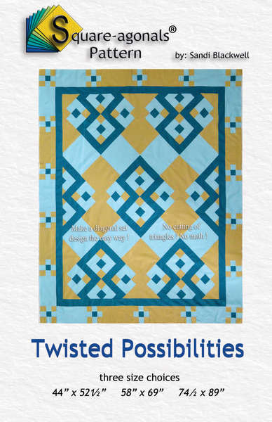 Learn the magic of the Square-agonals technique in the Twisted Possibilities Pattern by constructing simple quilts without cutting any setting or corner triangles, and no match calculations. Designed by Sandi Blackwell.