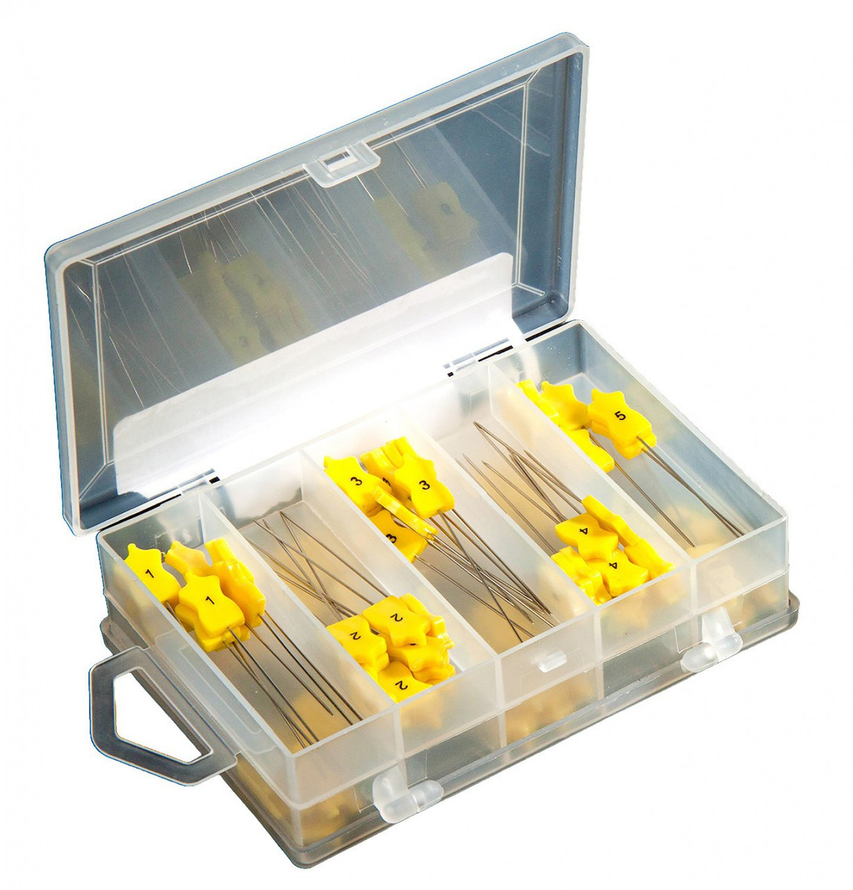Yellow numbered pins - #1-20. Comes in 2 clear boxes (banded together) labeled 1-10 & 11-20. Perfect solution for organizing quilt blocks, rows and columns when order is important for the design. High quality flat head pins to keep your sewing and crafting project organized. Allows for customization with marker to add more numbers or letters, if desired. Fine, sharp point and extra-long 43mm/ 1 3/4" pins, from number 1-20. Ideal for multi layers and bulk fabrics. Each box has 10 of each number. 100 pins per box - 200 pins in total. Great value!